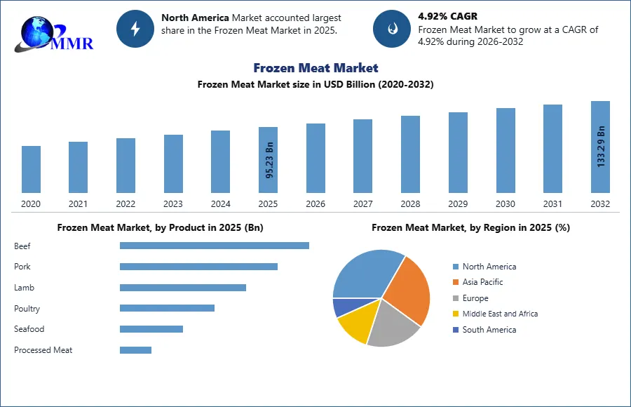 The global Frozen Meat Market is witnessing steady expansion, driven by evolving consumer lifestyles, technological innovations, and growing demand for convenient and high-quality food solutions. According to recent market analysis, the frozen meat market was valued at USD 95.23 billion in 2025 and is projected to grow at a CAGR of 4.92% from 2026 to 2032, reaching nearly USD 133.29 billion by the end of the forecast period.